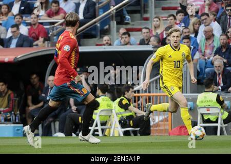 Emil Forsberg In Sweden And Sergio Ramos In Spain During The Uefa Euro 2020 Qualifying Group F Football Match Between Spain And Sweden On June 10 2019 At Santiago Bernabeu Stadium In
